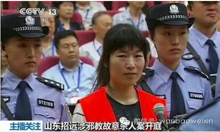 ——全能神。全能神的信徒受所谓“女基督”歪理邪说的影响,发生过很多杀人事件。1996年2月22日凌晨3时许,全能神信徒江苏省沭阳县村民万成彦为了向“全能神”献上“宝血”,洗清自己“身上的罪恶”,“拯救世上万人”,用斧头猛击熟睡中的自己8岁的儿子王磊。然后又将其儿子手臂水平分开用铁钉将两只小手钉在一个自制的十字型架子上,还将一根长长的钉子钉进了儿子的脑门里。2011年1月10日早晨7时许,河南省兰考县谷营乡谷东村的邪教“全能神”成员李桂荣用剪刀割断自己仅有两个月大女儿的喉咙,将其残忍杀害。据悉,李桂荣将自己在邪教内“降职”归因到女儿身上,认为女儿是小鬼,处处纠缠她,致使其没有时间“信神”、读书,遂产生了杀女的想法。2012年3月4日陕西西安全能神信徒王涛相信妻子被“邪灵”附体,王涛对妻子进行殴打、猛击后,用枕头捂住妻子的面部直至其窒息身亡。随后,王涛又用菜刀向妻子尸体头部、胸部和腹部连砍十余刀。2014年5月28日,山东招远发生了一起“全能神”邪教成员故意杀人案件,6名该邪教成员在麦当劳向周围就餐人员索要电话号码,在遭到拒绝后,竟当众施暴,残忍地将被害人殴打致死。